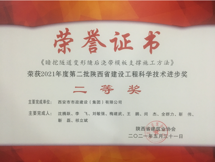 参加申报了2021年陕西省建设工程科学技术奖申报,并获得2021年第二批陕西省建设工程科学技术进步二等奖;